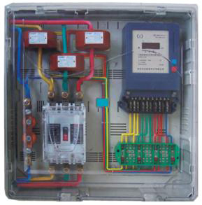 DG8类箱体式竖式结构,上盖、下底箱体,盖与底绞链连接,由电源断路器、电流互感器、负荷断路器、接线盒、铜芯绝缘导线、螺钉、塑封等部件组装。