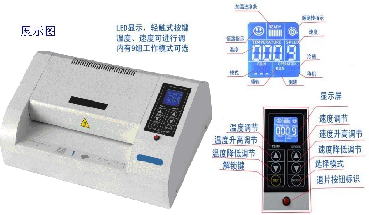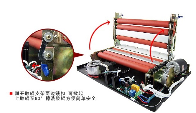 国内首家设计、制造的触摸屏制版机,6条胶辊,温度、速度可调,红外测温,胶辊可翻转,清洗方便。